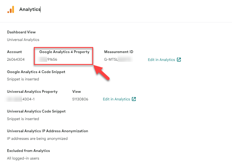 WordPress> Settings > Analytics > Ensure that the GA4 property selected is the same as per the above screenshot.